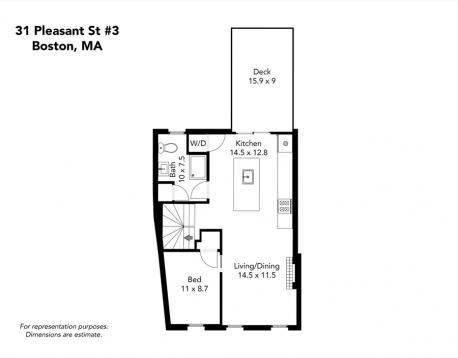 AVAILABLE JUNE 1 | HISTORIC CHARM MEETS MODERN FINISHES IN THIS PENTHOUSE ON ONE OF THE MOST DESIRABLE STREETS IN CHARLESTOWN + PRIVATE ROOF DECK! This remarkable property is sure to impress. This rehab of a historic brownstone was infused with modern touches throughout, ready for it's new modern resident. If the epic location didn't stop you in your tracks already, the contemporary selections will! The stunning, original pine floors were kept intact throughout. The Floorplan is open, sundrenched, airy, and an entertainer's dream. The Kitchen will exceed all of your expectations: high-end appliance package, range and vent hood. Complete with W/D in Unit, Decorative Fireplace, NEST Thermostat, Chef's kitchen, renovated bathroom with glass-framed shower with rain head, AND a built-out custom closet. Enjoy your private oasis moments from the Monument.