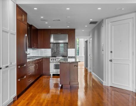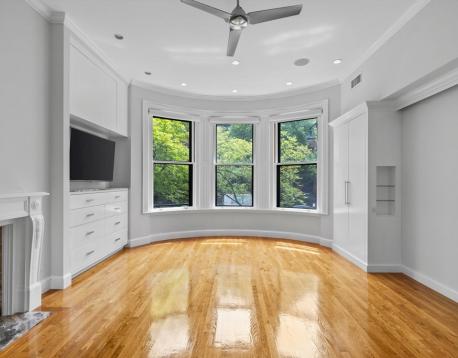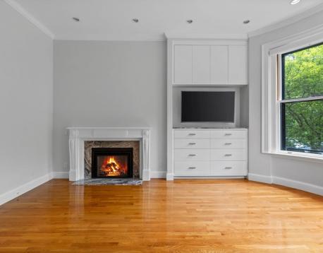 SUNNY SIDE OF BEACON | This stunning Back Bay residence is located on the parlor level of a classic brownstone on the coveted sunny side of Beacon Street. Overlooking a quiet courtyard and the Charles River and esplanade beyond, this special home features 2 bedrooms, 2 baths and a large open concept kitchen and living area with fireplace. A chef's kitchen with SubZero and Wolf appliances, custom cabinets, and other bespoke finishes are found throughout the impressive home. The primary suite has nearly 12' ceilings and a large bay window with automatic blinds, fireplace, built-ins, walk in closet and a large marble bathroom. Hardwood floors, soaring ceilings and crown molding complement this special unit. Beautiful common areas include original moldings, wood-paneling, and an elevator. Parking is included in the rent.