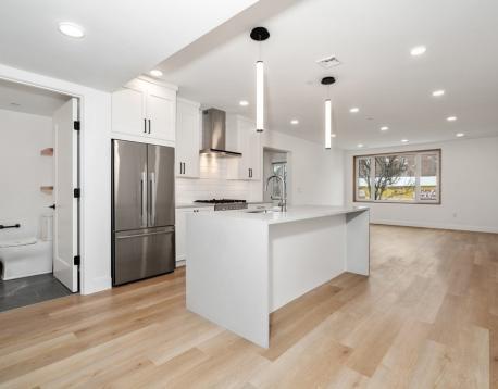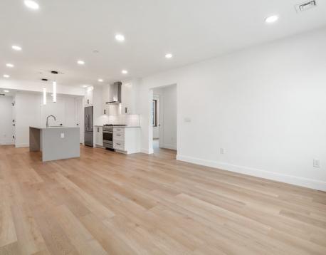 Experience modern living in this contemporary building, located in the heart of Jamaica Plain. This spacious 2-bedroom, 1.5-bathroom home features a sun-drenched, open-concept floor plan characterized by soaring ceilings and refined finishes. The gourmet kitchen boasts designer finishes, premium stainless-steel appliances, and an oversized eat-in island. Modern bathrooms feature high-end fixtures. Additional amenities include an in-unit washer/dryer, a dedicated bike room, and extra storage. Ideally situated, the property is a 0.3-mile walk to Stony Brook Station, providing a direct commute to Back Bay, Government Center, and the Financial District. This prime location also offers an exceptionally convenient commute to the nearby Longwood Medical Area.