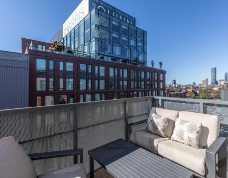Penthouse 1 bed, 1 bath w/ 1 garage space & private deck in the Sepia at Ink Block, a full service, LEED Gold condo building. Penthouse level upgrades include a gas fireplace & 10.5 ceilings. Developer upgrades include an integrated Liebherr refrigerator & Bosch d/w, Wolf cook top, oven and vent. Microwave drawer, marble floor in bathroom, light ash hardwood floors throughout & recessed lighting throughout. Entertain on the common roofdeck w/ 2 outdoor kitchens or the club room w/catering kitchen & gas fireplace. In addition to the building gym CorePower Yoga is are right downstairs as is Best of Boston restaurant, Bar Mezzana. Whole Foods is next door & can be accessed via a tunnel. Close to InkUnderground, SOWA galleries & market. Close to orange, red & silver lines. Airport is 8 mins away, 93/90 access 2 blocks away. Between TuftsMed and BUMed. One of the most convenient Boston neighborhoods!