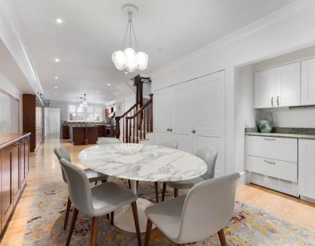 Recently updated 4-bedroom, 3.5-bathroom residence that perfectly blends modern luxury with timeless character. This spacious multi-level brownstone offers an exceptional layout, ideal for both comfortable living and elegant entertaining. Step into the beautifully designed lower-level chefs kitchen, complete with high-end stainless steel appliances, rich wood cabinetry, and a show-stopping patterned tile backsplash. The generous island and open-concept dining area flow seamlessly, perfect for gatherings of any size. Upstairs has four bright, well-appointed bedrooms, including a lavish primary suite featuring a spa-inspired en-suite bathroom with a double vanity, oversized rain shower, and sleek marble finishes. Additional bathrooms are equally refined, offering both style and functionality. Exceptional outdoor living with your private roof deck, offering panoramic city views. Two full parking spaces included! UNFURNISHED