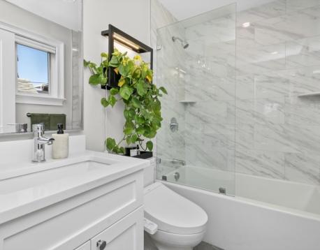 Recently built (2022) 3 bed, 3 bath home offering the privacy and feel of a single-family residence. Set back from the street, this home is quiet and filled with natural light throughout. Main living level features 10 ceilings, white oak hardwood floors, and an open-concept layout. Kitchen includes custom cabinetry, quartz countertops, and flows directly into the living and dining areas with a gas fireplace. Private outdoor space includes an expansive deck with city views and a lower level patio. The lower level includes a guest suite and a separate home gym. Two large off-street parking spaces included, equipped with one EV charger. Additional features include central air, in-unit laundry, and private entrance. Offered fully furnished at $8,950/month.