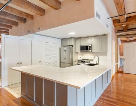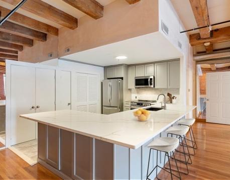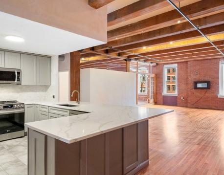 GORGEOUS open floor plan --- LOFT style apartment w/oversized living/dining area!!! Oversized windows-- lots of sunlight, High exposed ceilings and exposed brick wall; Gleaming Hardwood Floors, Central A/C, Washer/Dryer in Unit, renovated bathroom---Dual sink/vanity; Dishwasher, Stainless Steel Appliances, All newly redone open kitchen with new cabinets and quartz counter tops. Unbeatable location---Walk to Financial District, Boston Harbor, Seaport, 10 minutes to/from the Airport. No smoking!! IT WON'T LAST!!! Two bedroom, one full (just renovated) bath loft in the heart of Fort Point. central A/C, abundant closet storage, overhead lighting, elevator building. Incredible location close proximity to restaurants, public transport, museums, markets, Boston Harbor and the FINANCIAL district. Rental parking available or resident sticker on the street. First and Last months rent, move in/move-out fee paid at lease signing. Owner will now consider one cat. No dogs