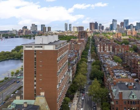 Highly sought after 8th floor residence with direct elevator access shared by 2 units. This property has been beautifully maintained featuring an enormous private balcony offering panoramic views of the Charles River and south facing Back Bay skyline. Oversized living areas are bathed in sun featuring many thoughtful design elements and custom built-ins. The open plan is perfect for entertaining with an open dining area and fully applianced high end Chef's kitchen outfitted with stone counters + plenty of storage. Lovely primary bedroom with a big walk-in and spa-inspired bath. Similarly sized second bedroom complete with custom closets and bath. Building amenities include 3 elevator bays, 24/7 concierge, live-in manager, gym and library. Garage or outdoor parking available for rent. Separate storage closet. 330 is among Boston's iconic properties accessible to culture, recreation, historic landmarks, dining + shopping for which it is renowned. Easy commuter options by rail, car + air.