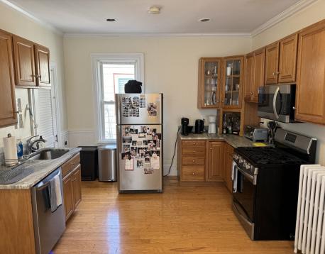 Beautiful 6-BEDROOM DUPLEX apartment with amazing private roof deck close to NEU and Wentworth. Quick access to the train, Longwood, museums, Fenway & all Boston area amenities for full city-living. Optimal apartment layout with various bedroom sizes to meet different budgets, making this apartment an ideal off-campus option. First level has four bedrooms and a full bath. Large updated eat-in kitchen with SS appliances, a great space to gather, prep meals, plus plenty of storage for supplies. Second level has two more bedrooms, a full bath and in-unit laundry. Top it off with a spacious living room that leads to a large private roof deck, providing plenty of space to hang out and entertain. Convenient keyless entry. Backyard provides additional space to socialize and get fresh air. Brand-new high-efficiency heating and hot water on-demand systems installed in 2021.Tenants pay for gas & electric. Owner pays for water.