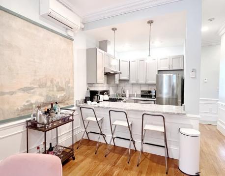 Welcome to this beautifully renovated parlor level 1 bed on the southwest corridor park opposite Copley Mall DIRECT ACCESS PARKING. Details abound w and inviting entry into living room w high ceilings, original marble fireplace mantel & large bay windows overlooking tree-lined st of Yarmouth St. This unit has original details such as the tall thick wood doors, original hardware, high ceilings, wainscoting, crown moldings, ceiling medallion, hard wood floors, in unit washer/ dryer and CENTRAL A/C via mini splits. The spacious kitchen features high end ss apps, dishwasher, vented hood, dual oven with gas range and granite countertops & lots of storage, & breakfast bar. The spacious bath features a large marble tiled shower w glass surround, washer/dryer.The bedrm has great closet & storage space. Heat is unit controlled. Walk to all Back Bay & South End have to offer for shops, restaurants, BSO, Copley Mall/ Sq, Shaws, Back Bay Train station. Parking $275 a month