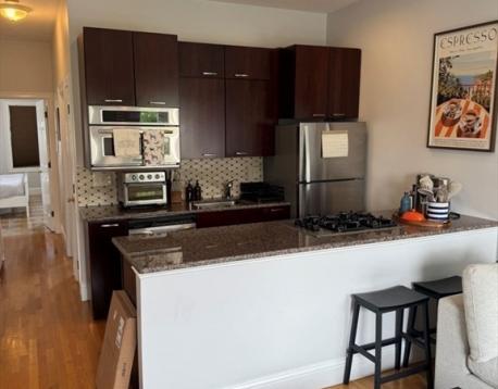 Available 06/01/2026 GARAGE PARKING South Boston penthouse 2 bed 1 bath home with deck, & hardwood floors throughout. Modern kitchen. Remodeled bath 2017.Central A/C. Washer/dryer in unit. Featuring 12 ft ceilings lots of windows and light. Open floor plan. Huge primary bedroom with California closet. Goodsized 2nd bedroom 9 x 9 also with California closet. Common yard area with grills for building use. Deeded garage assigned parking space #31 in adjacent building. Conveniently & centrally located just off the intersection of East & West Broadway. Close to Andrew & West Broadway T-Stations, Foodies,shopping & restaurants, and the Seaport District. Common laundry & bike storage in basement. No pets. No vaping, smoking or marijuana. Lease 6/01/2026 through 8/31/2027 - 15 months.