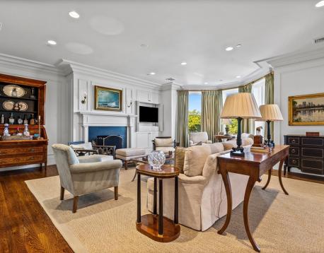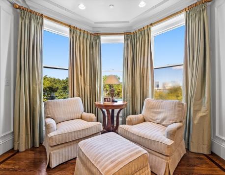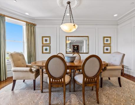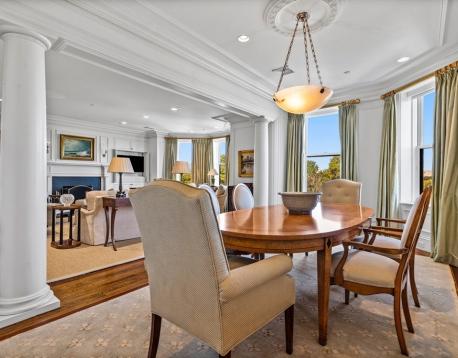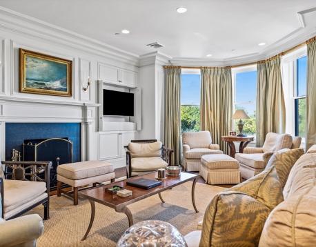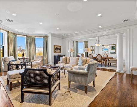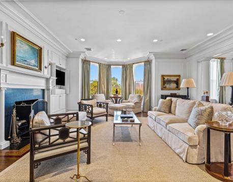 The Former Converse Mansion, this Premier Sunnyside/Waterside Luxury Residence with Stunning Charles River Views Experience refined living in this expansive 2,367 square foot luxury residence, ideally located on the Sunnyside of Beacon St. with glorious views of the Charles River. This elegant home features 2 spacious bedrooms, a versatile den, 2.5 bathrooms, and direct elevator access into the unit. Included are two deeded parking spaces for added convenience. Thoughtfully designed for both comfort and sophistication, the residence boasts a grand formal dining room and sun-filled family room, each lined with large windows that capture abundant natural light. The primary suite overlooks Beacon Street and offers custom-built closets and a beautifully appointed marble en-suite bathroom with a large walk-in shower.