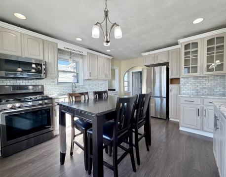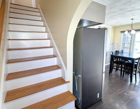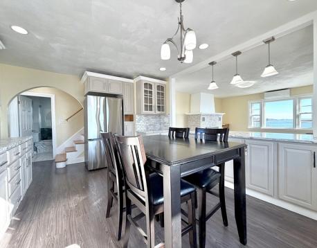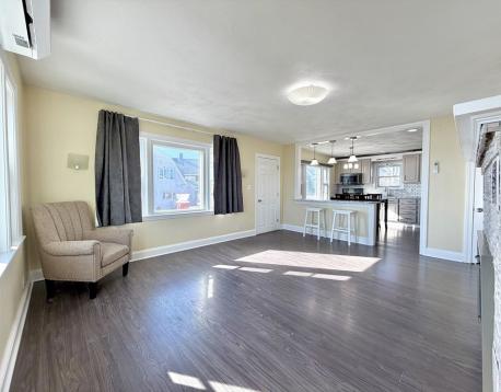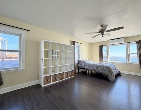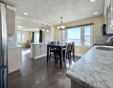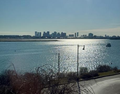 Rare opportunity to live in a spacious 3-bedroom, 1.5-bath home with sweeping views of the Boston skyline. This roughly 1,400 sq ft unit spans the second and third floors and features a private entrance, excellent natural light, and a layout offering both space and privacy. The main floor has the updated kitchen with ample cabinetry, and a breakfast bar. This flows into the well-lit living room with fireplace and amazing views. The main bedroom and bathroom round out the floor. The second floor has two large bedrooms with one including a half bath. Every room is equipped with its own mini-split system for individual zones The home has generous closet space and in-unit laundry. The standout feature is the large shared deck overlooking the water and city, an incredible place to take in the skyline . Driveway and street parking available. Conveniently located close to the Blue Line for an easy commute into downtown Boston, along with quick access to the waterfront, parks, and restaurants!