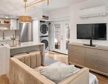 Step into your urban oasis and escape the city the moment you enter your private, walled garden, highlighted by a stunning glass sunroom and outdoor hot tub! This newly renovated Pied--Terre features large French doors, oversized windows, and western exposure that floods the space with natural light. The incredible glass-enclosed 3-season room serves as the perfect extension of your living spaceideal for a morning coffee, evening wine, or entertaining guests. The kitchen is outfitted with oversized stainless steel appliances, Quartz countertops, and a generous islandperfect for cooking and gathering. The newly done bathroom includes stylish fixtures, new tile, and a deep soaking tub. Additional highlights include excellent storage, central A/C, and full-sized in-unit laundry. With a Walk Score of 96 and a Transit Score of 94, youre just moments from the Esplanade, Newbury Street, and all the best shopping and dining the Back Bay has to offer.