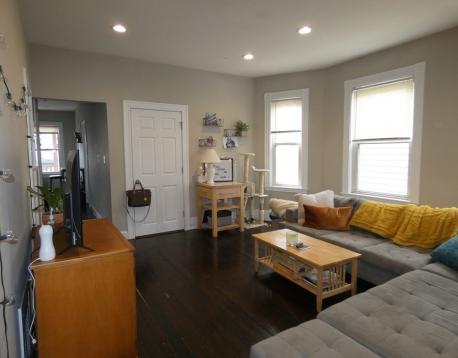 Beautifully 4-bedroom residence in East Boston offering the perfect blend of space, style, and modern convenience. This home showcases a designer kitchen with granite countertops, stainless steel appliances, and new cabinetry, along with walnut-stained hardwood floors throughout. The elegant Carrera marble bathroom adds a refined touch. Enjoy year-round comfort with high-efficiency central air controlled by a Nest thermostat, plus the ease of in-unit laundry. Step out onto your private deck or unwind in the shared backyardideal for relaxing or entertaining. Located just one block from public transit, making commuting into downtown Boston effortless. Available September 1st.