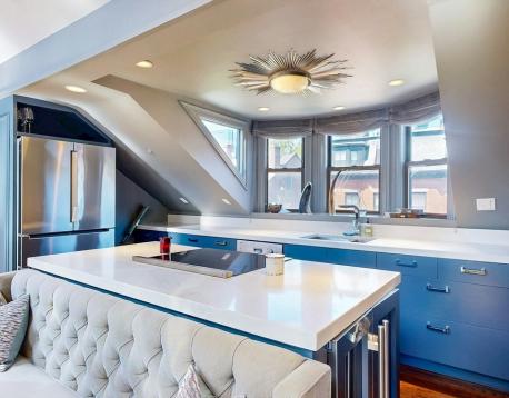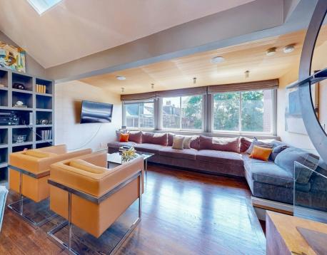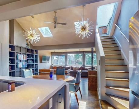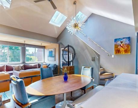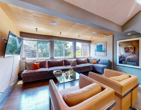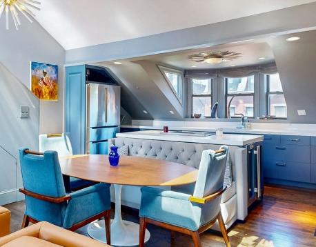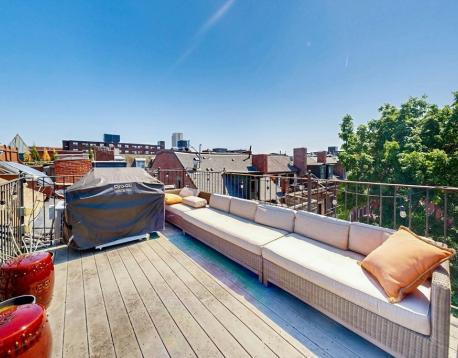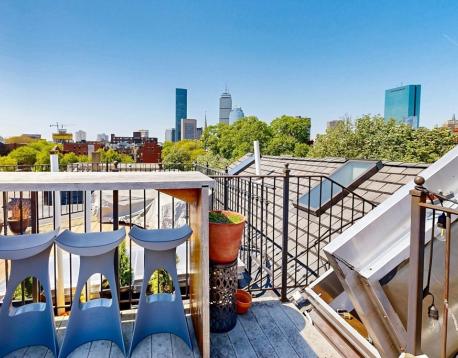 WOW Fully Furnished. Avail 6mths plus. Gorgeous renovated 2 bedroom and 1.5 bath Penthouse duplex - featuring a sun splashed open living/dining room with dramatic vaulted ceilings and a wall of windows with city and lush green tree top views. Entertain in the delightful cooks kitchen with quartz counters, custom cabinets and excellent storage. Accents include skylights, bay window with Prudential views, all modern finishes and designer lighting. Experience comfort in excellent size bedrooms, custom closets ,and a bonus walk in closet. Enjoy the amazing city views from your 175 sq. ft. private roof deck. This beautiful urban oasis for community gardeners is also a top location steps to everything- including shopping, cafe's, Sowa art market and with a walk Score of 94, this location is a Walkers Paradise so daily errands are a breeze. This neighborhood home to nearby parks & world-class public transportation