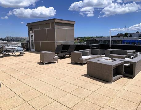 JUNE 1st. Amazing 2 bed, 2 bath with everything you could want in a home. The unit has 1200 of living space with an open plan. Central A/C, granite and stainless kitchen, W/D, 2 full bathrooms, free WIFI and a private deck. This is an elevator building with keyless entry, complimentary use of the common roof deck with stunning views of the city and a built in gas grill. Both bedrooms are a good size. One can fit a king bed and has a walk in closet, the other can fit a queen with desk and dresser and has a full closet. Pets are welcome with some breed restrictions. 1st month's rent and 1 month security deposit due at lease signing. 1 year lease. 24 hr notice to tenant for all showings. There is a garage parking spot for rent in the building as well $400 per month