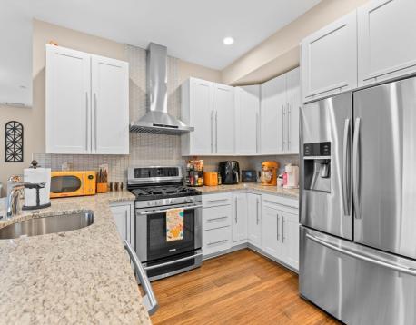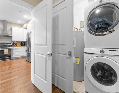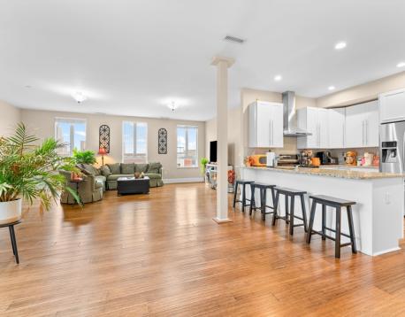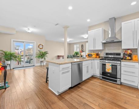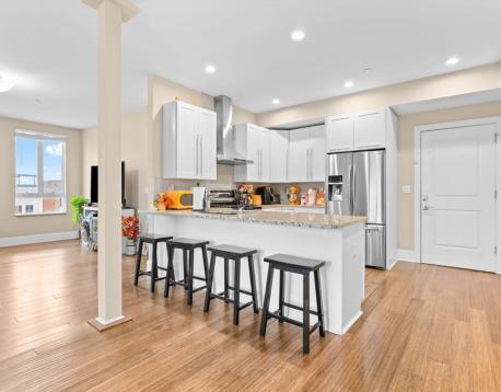 This bright and modern unit offers an open-concept floor plan with gleaming hardwood floors throughout, creating a warm and inviting flow from the kitchen to the living area. The contemporary kitchen features stainless steel appliances and generous cabinet space, while the private outdoor balcony provides the perfect spot to unwind. Both bedrooms are spacious, with the primary suite offering an en suite bathroom and walk in closet. Additional features include an in-unit washer and dryer, a parking spot in a heated garage, and access to a shared roof deck with stunning city views. With its stylish finishes, functional layout, and prime South Boston location, this unit is an exceptional rental opportunity.