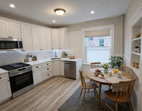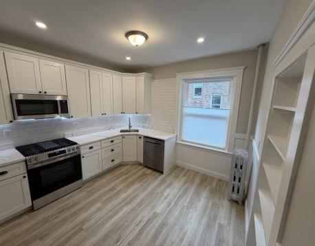 AVAILABLE NOW This elegantly remodeled two bedroom apartment nestles on the second floor of a beautiful turn-of-century brownstone (professionally managed) on Riverway of Jamaica Plain near Brooklines Longwood community and Brigham Circle. The apartment features hardwood floors throughout, high 9 ceilings, large windows/natural light, new kitchen w/stainless appliances and quartz countertop, top-down-bottom-up shades, ample closet space, and more. The unit was tastefully updated with timeless design. The Riverway provides scenic relief for commuters on foot, on bicycles, and on the parkways. Convenient to Brookline Village, Northeastern, Simmons, Emmanuel, Wentworth, Mass Art, Jamaica Pond and the Emerald Necklace parks and jogging/bike trails. Easy walk to the Green Line D & E lines and 66 bus. Quick access to the Kenmore/Fenway area and to Downtown Boston. Photos show the unit virtually furnished with AI staging.