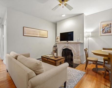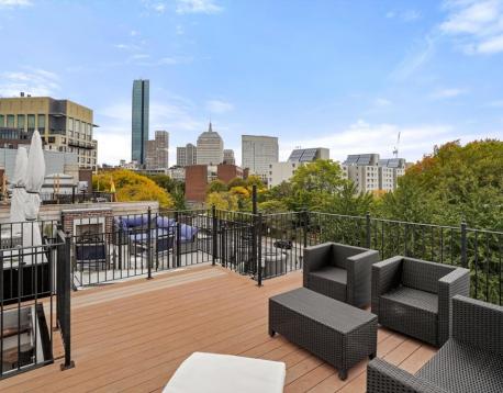 Beautiful 1+ bed South End penthouse apartment with private roof deck! The sunny and spacious kitchen has wonderful cabinet and counter space. Comfortable living room with wood floors, recessed lights, ceiling fan, decorative fireplace and room for a small table. Tile bath with tub, laundry in-unit and great closet space. The smaller bedroom also works great as a home office. The private roof deck has amazing views of the South End and Back Bay skyline! Conveniently located just moments from many of the neighborhoods best shops and dining.