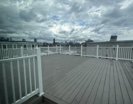 Available 9/1/26! New construction duplex with central air, included parking, and one of the largest private roof decks in the city! This expansive 4-bedroom home features hardwood floors throughout and exceptional indoor-outdoor living, including an open, fully equipped kitchen with private deck for al fresco dining and a separate living and dining area perfect for entertaining. The primary suite offers a walk-in closet, en suite bath with jacuzzi, and its own private deck, while two additional bedrooms provide great closet space and natural light. The upper level includes a versatile fourth bedroom -- ideal as a second living space, office, or playroom -- opening to a massive private roof deck with sweeping Boston skyline views. Laundry in building and conveniently located just 0.5 miles to the train, with easy access to Bully Boy Distillers, Dorchester Brewing Company, South Bay Center, and I-93.