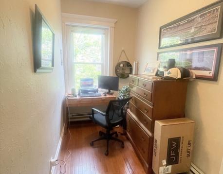 One bedroom plus study on Beacon Hill. Large common areas and natural sunlight. Kitchen, living room and bedroom all have 2 windows. Study has one. Eat-in kitchen with plenty of space. Entry way hallway adds storage options. Good closet space. Bedroom and study just painted overlook common green garden area. Professionally managed building. Common areas beautifully maintained. Refresh painting being completed. Common garden area and bike storage. Photos from past tenants and footprint units. Walking distance to MGH, T station, Esplanade, Whole Foods, North End, Back Bay.