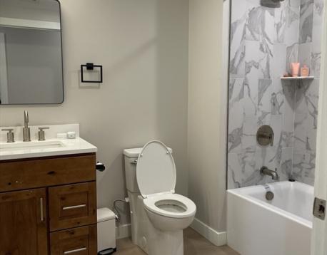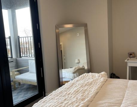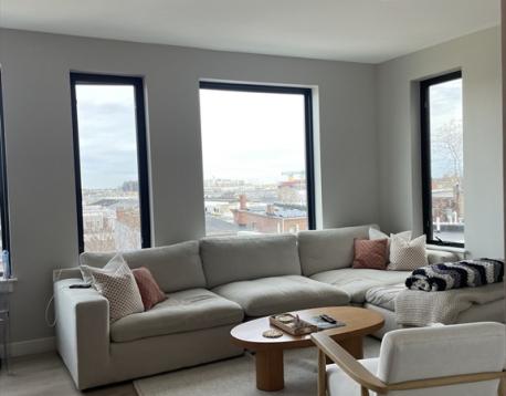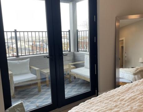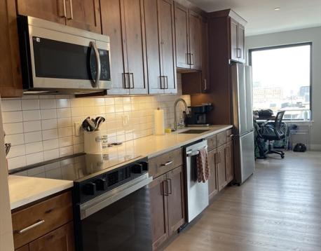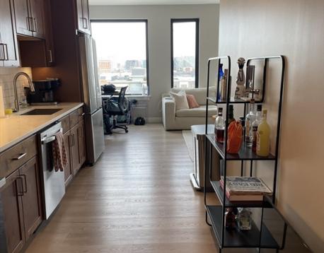 Welcome to 400 West Broadway! This beautifully appointed 2-bedroom, 2-bath residence on the 4th floor is located in the heart of South Boston. The unit features modern finishes and appliances throughout, along with remote-controlled heating and air conditioning. The open-concept kitchen and living area flows seamlessly to a private covered balcony, offering views over South Boston with distant city sights visible from the living room, kitchen, and balcony. Both bedrooms comfortably accommodate queen-sized beds; the primary bedroom is slightly larger and includes an en-suite bathroom and a walk-in closet. Building amenities include an elevator, fitness center, rentable storage, and heated garage parking. Garage parking is available for an additional $350 per month. Pet-friendly applications are welcome. Available June 1st.