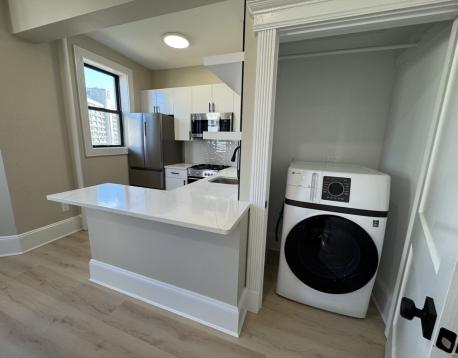 Incredible, brand new gut renovation! // This exceptional and front facing one bedroom is as good as it gets! // Located in a boutique elevator building on Edgerly Road, this unit has just been completely redesigned with in unit laundry, central cooling/heat, electric fireplace, gourmet kitchen with built-in shelving and quartz counters, designer full bath, new EVERYTHING + TV above fireplace comes with the unit! // Big and sunny bow front living room with several windows, city views, and high ceilings. // Most convenient and central location at the intersection of Back Bay, Fenway, and the South End with quick access to Public Transportation, Longwood Medical Area, Kenmore Sq, Cambridge, grocery, restaurants, cafes and more! // Hot Water, Water + Sewer included! //