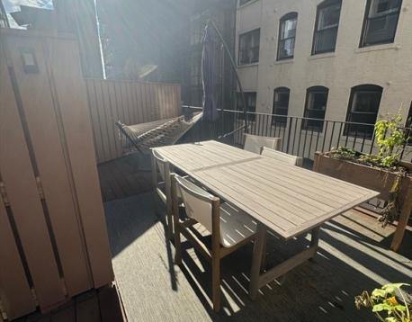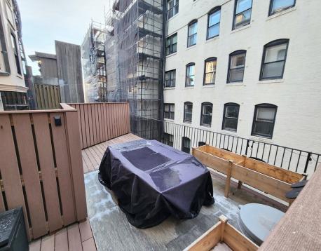 Spacious and rarely available large 1 bed in Back Bay's iconic luxury elevator building, The Somerset, with an unbelievable 300 sqft exclusive deck and a newly renovated dry bar with wine fridge in the living area! Located on the fourth floor, you're greeted by the bright living room with built-ins and a wall of windows with direct access to the generous deck with privacy fencing. As one of the largest decks in the building, this gracious outdoor space is ideal for dining and lounging. The adjacent kitchen features stainless steel appliances all about 1 year old, Corian countertops, and ample cabinetry with under-mount lighting. The primary bedroom with ensuite bath and walk-in closet can accommodate a king-sized bed and furniture. In-unit washer/dryer(1 year old), AC. The Somerset offers 24-hour concierge, professional management, gym, and in ground pool. Garage on-site and parking for rent or purchase based on availability. Please text for showings!!!