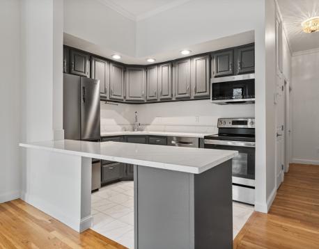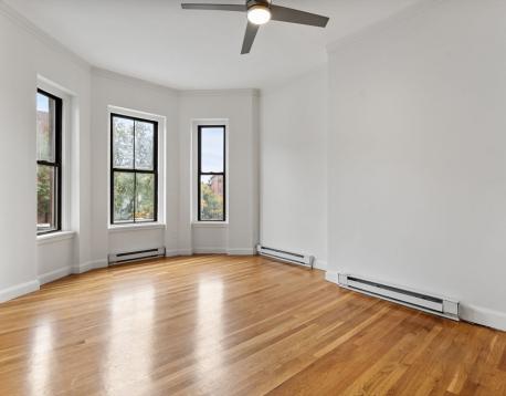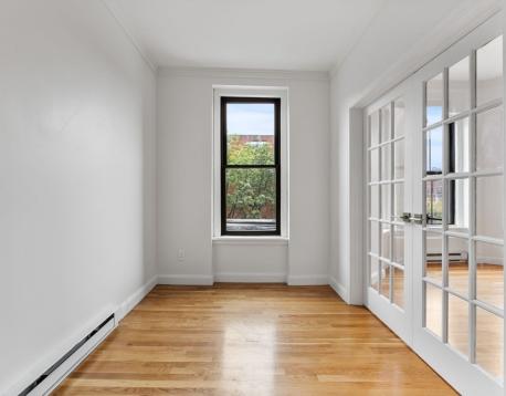 Available Now! 2 BEDROOM + OFFICE w/parking option! This sun-filled, floor-through updated condo is ideally situated at the intersection of the South End and Back Bayan A+ location! The open-concept living and kitchen area features a large bay window, soaring 11-foot ceilings, crown moldings, and hardwood floors throughout. The recently updated kitchen has stainless steel appliances, quartz countertops, an eat-in peninsula, and ample cabinetry. The front room with glass doors makes an ideal home office/ study/dining area. The primary and second bedrooms are located at the rear, along with a full bath and a coat closet. Additional features include a shared roof deck with stunning city views and a common washer/dryer located on the parlor level. Utilities: Electric heat and cooking; window A/C for the summer months. Enjoy the convenience of nearby amenities like Sparrow Park, boutique shops, and neighborhood favorites such as Gigis and Charlies Kitchen. First, last, security upfront.