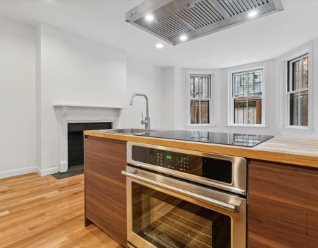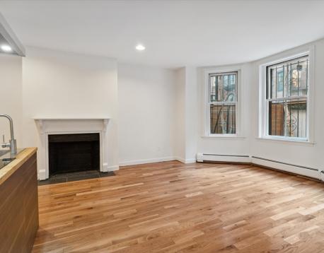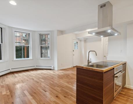 Recently renovated one-bedroom residence on highly sought-after Marlborough Street featuring a private, fenced-in brick patio. This spacious apartment, thoughtfully redesigned with a brand-new open-concept kitchen with full appliances. The modern bathroom showcases a polished porcelain walk-in glass shower and natural stone tile flooring. Hardwood floors run throughout, complemented by an original decorative fireplace in the living area. The generously sized bedroom comfortably accommodates a king-size bed. The private brick patio offers exceptional outdoor living space and includes a secure gate for a private entrance. Heat and hot water included.