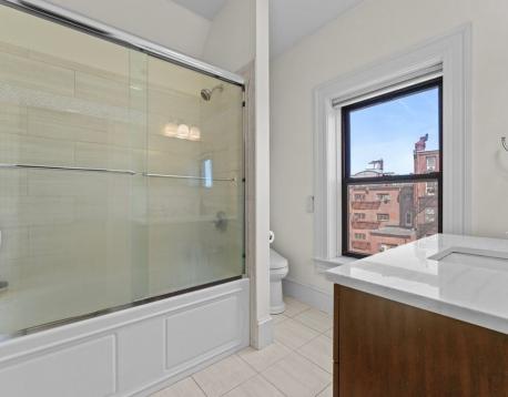 Beautiful penthouse located on one of Back Bay's most desirable streets. Street facing 2 bedroom/2 full bathroom on the sunny side of Marlborough Street. Tastefully designed renovated open-design kitchen and modern bathrooms ooze functionality and comfort. Top end appliances with gas cooking. A spacious dining room is perfect for entertaining or quiet time. Hardwoods throughout. An impressive primary bedroom with an ensuite bathroom and ample closet space allows for privacy and solitude. A second bedroom and full bathroom, washer and dryer in the unit and a welcoming living area complete this well-designed top floor unit. A large tandem parking space is located in the rear of the building, with direct access to the building. A mini-split system was added in 2018. Heat and hot water are included in the rental price. Ample sunlight cascades throughout. Close to Newbury St., Universities, Longwood Medical and Kenmore Square as well as the Charles River. MIT is just over the bridge.