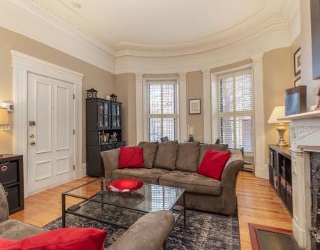 Welcome to Blackstone Square! This parlor level 1 bedroom 1 bathroom condo features private deck. High ceilings, tall windows, historic details, hardwood floors throughout, and two decorative marble mantels with decorative fireplaces. Kitchen has white cabinets, stainless steel appliances, and dishwasher. Renovated bath with walk in shower. Private in unit washer/dryer. Self managed, pet friendly association. Deeded basement storage. 2 mobile AC units included. Blackstone Square and Franklin Square are right out the door. Nearby hot spots: El Centro, Shawmut Inn, Flour and Toro. Blue Bikes and Silver Line one block away.