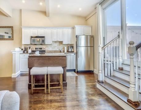 Available 4/15! Stunning 2 bed/1 bath penthouse condo with open floorplan, stainless steel appliances, granite countertops, high ceilings, gas fireplace, and direct access to a large rear deck with city views. Primary bedroom fits a king bed with oversized closet; second bedroom fits a full bed or works as a home office. Hardwood floors throughout, in unit laundry, basement storage, and one dedicated parking space.