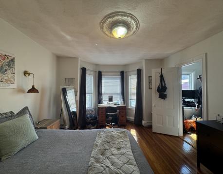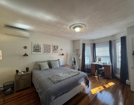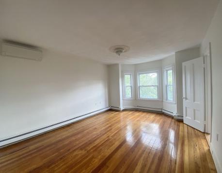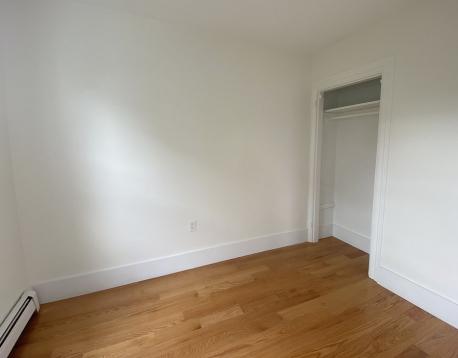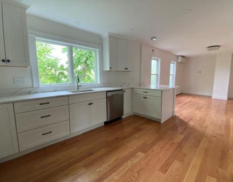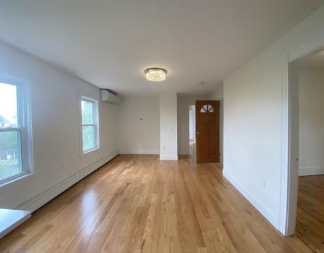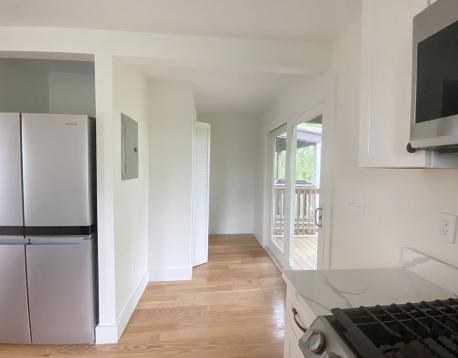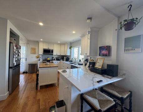 AVAIL 6/1! Penthouse level unit in remodeled 3 family adjacent to a tree filled lot, creates a treehouse vibe. Spacious entry area leads to open concept living/ kitchen area with HW floors throughout. Custom kitchen is large with stainless appliances (gas range) and Quartz Counters. Separate dining nook features full size laundry closet and french doors leading to large private deck. Primary bedroom suite overlooks Sumner Street with a bay window, and features a second room with closet- great as office/nursery/cycling space. Second smaller bedroom is a perfect guest space! Shared backyard oasis complete with patio w/ fire pit, built in seating and shed for bike storage. Minisplit AC/Heat, smart lighting and locks. Blocks to Shipyard (ICA/Downeast), Harborwalk, tennis and the Waterfront (Piers Park/Tallship) Accessible by MBTA Maverick Station, Airport Gate to Hwy, 120 Bus and Ferry! First, security, excellent credit required at lease signing. Pets negotiable.