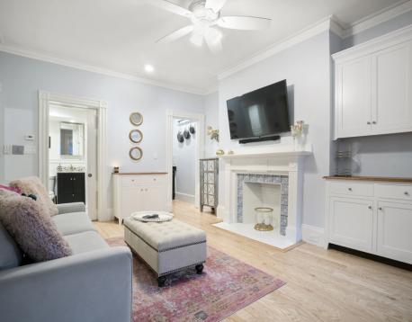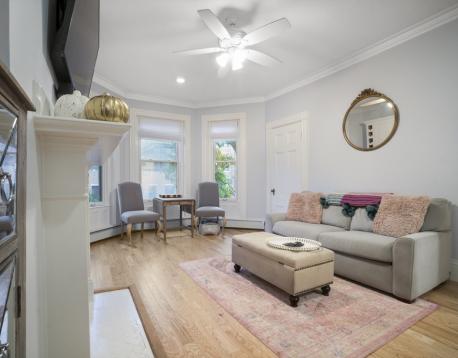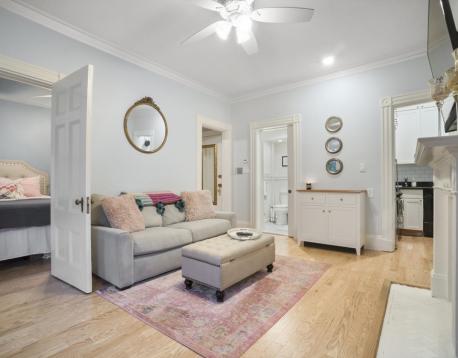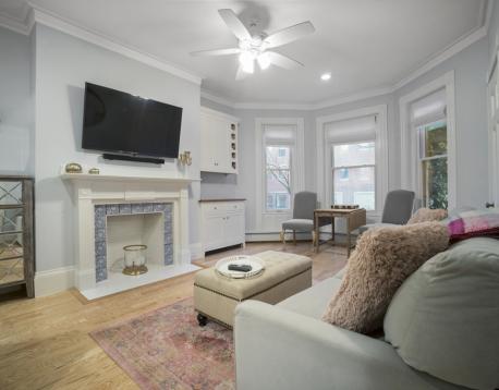 Perfectly situated, absolutely charming front facing one bedroom unit on the sunny side of Marlborough Street close to all Back Bay has to offer. This lovely home has been beautifully renovated and features a spacious living room with a large bay of windows overlooking Marlborough Street, a handsome fireplace, recessed lighting and gorgeous built-ins. The well-thought-out kitchen has granite counters, pot rack, dishwasher, subway tile backsplash and white cabinetry. The recently redone bathroom has glass enclosed shower, medicine cabinet and vanity storage. A great sized bedroom easily accommodates a queen sized bed and is adjacent to the large walk-in closet. Hardwood floors throughout, great ceiling height and rent that includes heat and hot water. Available September 1st.