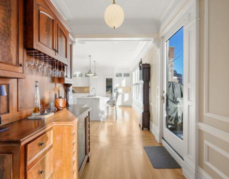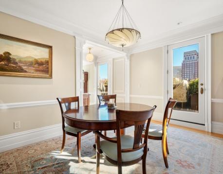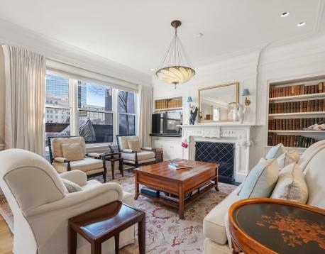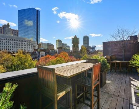 A rarely available short term, furnished rental in a sophisticated full-floor residence, accessed via a private elevator for ultimate convenience. Situated on the 5th floor of a prestigious townhouse on Commonwealth Ave's 2nd block, it blends timeless elegance with modern amenities. Spanning 50 ft along the building's front, the expansive living, dining, & kitchen areas offer views of Commonwealth Ave Mall & Back Bay skyline. A rare walk-out deck spans the length of the living space, seamlessly connecting indoor/outdoor living. High ceilings, a gas fireplace, oversized windows with electronic shades & custom built-ins enhance the charm. The chefs kitchen feat. handcrafted cabinetry, large center island & a wine fridge. A wood dry bar adds to the home's entertaining appeal. Two spacious bedrooms with en-suite baths, a powder room, an exceptional roof deck with 360 degree views & direct elevator access to 2 garage spaces complete this home. Close proximity to Public Garden & Newbury St.