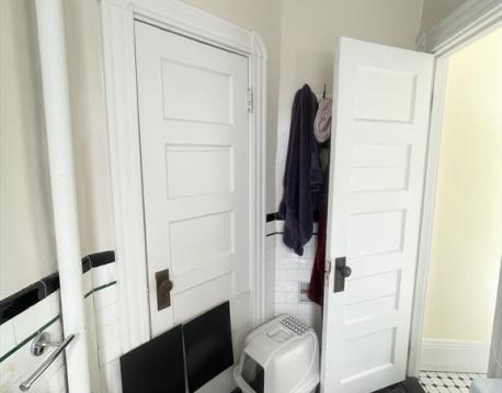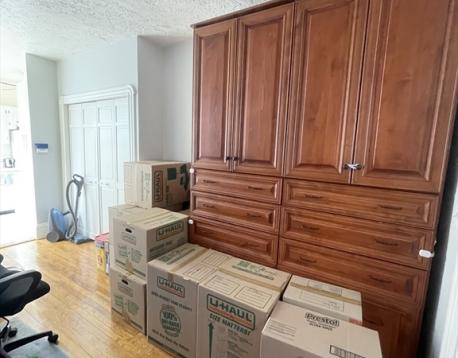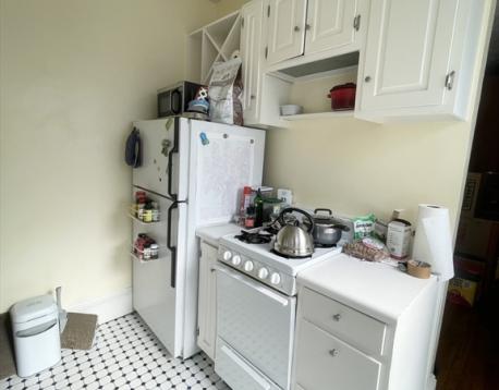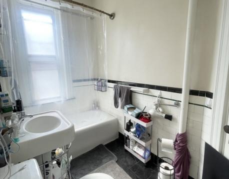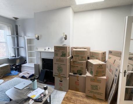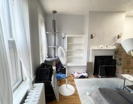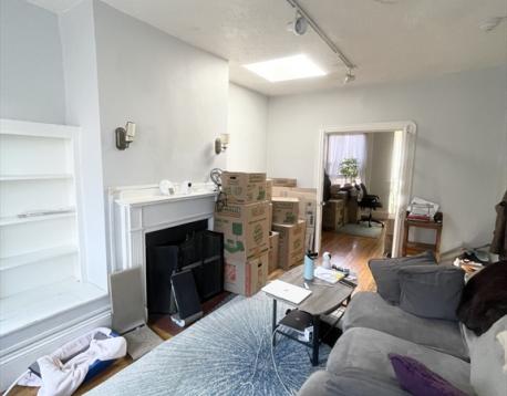 Sunny and bright floor through 1 bedroom plus bonus room. Fourth floor walk up allows for great views. Private roof deck, in unit laundry, decorative fireplace, two great sized closets. Floor to ceiling wooden dresser is part of the unit. Hardwood floors throughout. Small front room can be used for a bedroom or office. Middle bonus room allows for varied arrangement. In unit laundry, pet friendly and private deck space complete this home. Photos depict present moving status and roof deck is presently being worked on. Professionally managed building.