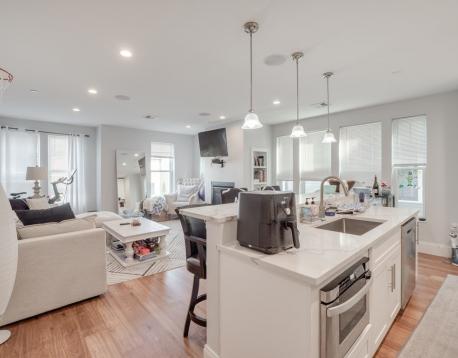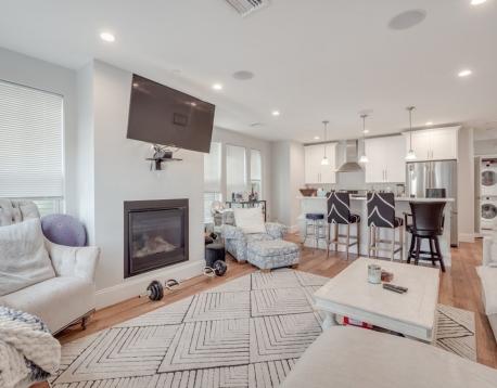 AVAIL 9/1/26 Be the 2nd person to live in this beautiful newly constructed unit with a 30-unit mixed-use building, complete with ultra luxurious finishes including steam showers, fireplaces, quartz countertops, high end appliances (inc. wine cooler), central air, on-demand high efficient HW heaters, built-in Bluetooth speakers, elevator service and more. This is a great corner unit at the front of the building on the 3rd floor with TONS of natural light. Full size W&D in-unit. Great location with access to public transit, bars and restaurants. Garage parking spots are available for an additional fee of $465 per month.