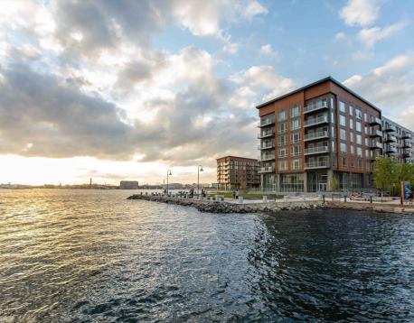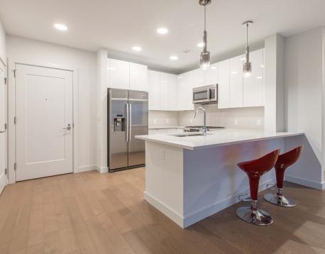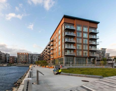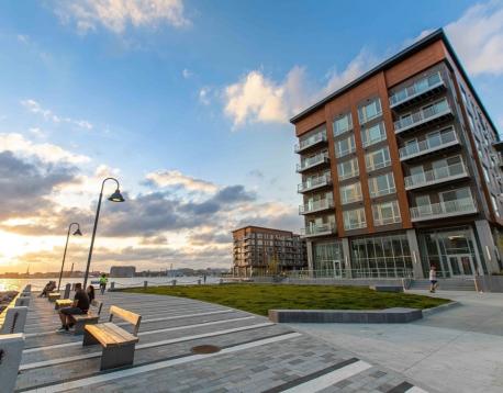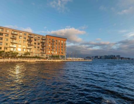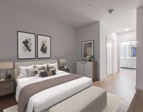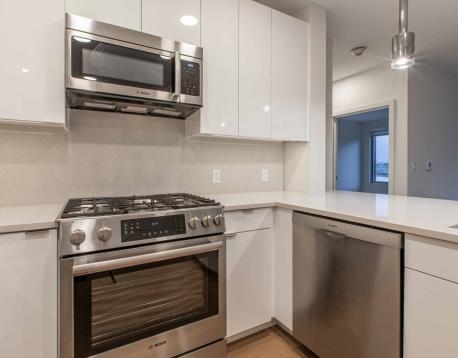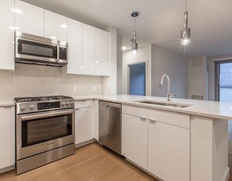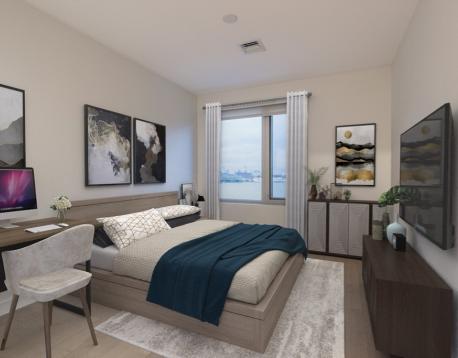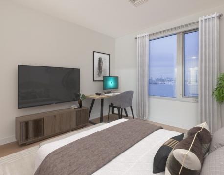 You will love this newer construction unit with dramatic windows bringing the Wharf into your home! 1 garage parking assigned to the unit included, along with heat and hot water. The unit features a private deck, garage parking, a high-end kitchen, breakfast bar, two luxurious bathrooms, brand-new engineered hardwood floors, a nice-sized master bedroom with walk-in closet, and a second bedroom with walk-in closet. Enjoy central A/C, on-demand water heating, the latest tech, and a great view. Available Jan 1 or 15 with a flexible move-in date. Common amenities include waterfront lounges, catering kitchens, gallery, WiFi spaces, workstations, kids room, game room, billiards, shuffleboard, courtyard, Harborwalk, dog park, amphitheater, boat dock, patios with grills and fire pits, concierge, water taxi, Blue Line access, car sharing, EV charging, dog wash, underground garage, caf, fitness center, kayak center, 24/7 package lockers, and Butterfly entry.