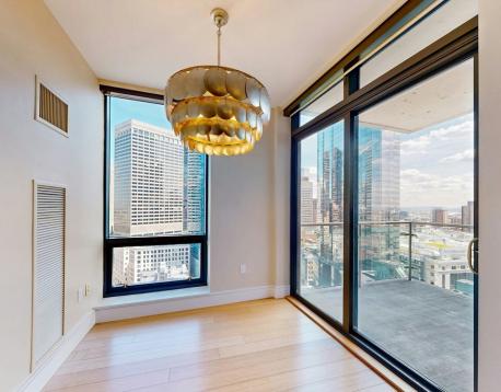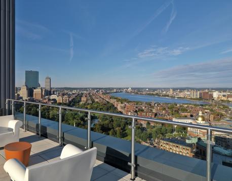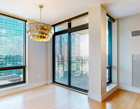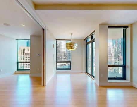 Floor to ceiling glass walls of windows in every room wrap this 2BR/2BA home w/ rare private terrace invite panoramic views right into the living space. East to South exposures flood the home w/ light while afternoon sun reflections luminate over the Financial District. Open concept floor plan is perfect for entertaining while custom cook's kitchen features Bosch appliances, Subzero refrigeration & Wolfe gas cooking. Designer finishes include spa inspired primary bath w/ oversize rain shower, & bamboo flooring throughout, Guest bedroom may be used as an office/study. Washer/vented dryer in unit and one valet parking space complete this home. 45 Province is Boston's boutique urban community offering 24/7 concierge, amenities -heated pool, fitness center, private dining room / chef's catering kitchen, fireside library lounge, theatre screening room, 33rd floor roof deck & more.