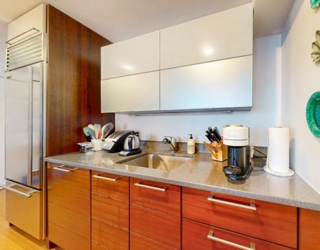 Floor-to-ceiling walls of glass frame panoramic views from every room of this 23rd floor 2-bedroom, 2-bath, 1,291 sf residence. The open-concept layout is ideal for modern living and entertaining, highlighted by a custom chefs kitchen featuring Bosch appliances, Sub-Zero refrigeration, and Wolf gas cooking. Designer details abound, including bamboo flooring throughout & a spa-inspired primary bath with oversized rain shower. The versatile guest bedroom with custom walnut pocket doors doubles perfectly as a home office or study. Additional features include in-unit washer/dryer and one valet parking space. 45 Province is Bostons premier boutique luxury community, offering 24/7 concierge, heated season pool, state-of-the-art fitness center, private dining room with catering kitchen, fireside library lounge, theater screening room, and an iconic 33rd-floor roof deck with gas grill and sweeping city views over all of Boston.