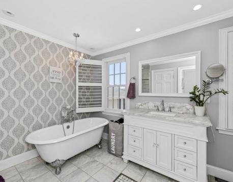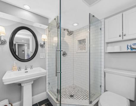 Exceptional opportunity to rent a historic 2BD/2BA in the Gas Light District w/exclusive use of two on-site, non-tandem parking space. Enter the Wiley Carriage House through its exclusive brick patio into an elegant foyer w/a built-in custom wood bench, heated floors, bedroom suite, & full bath w/glass-enclosed shower. Upstairs, the sunlit living space features high ceilings, double-crown molding, & an open floor plan. The high-end kitchen includes white shaker cabinets, quartz countertops, a farm sink, stainless appliances & an island w/bar seating. The primary suite has a large bedroom w/a custom walk-in closet & a stunning bath w/a tub, marble-topped vanity, & a step-in shower w/subway tiles to the ceiling. Stained wide oak floorboards, exposed wooden beams, & plantation shutters complement modern conveniences like central air, en-suite laundry, & ample storage. This is the one!