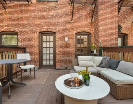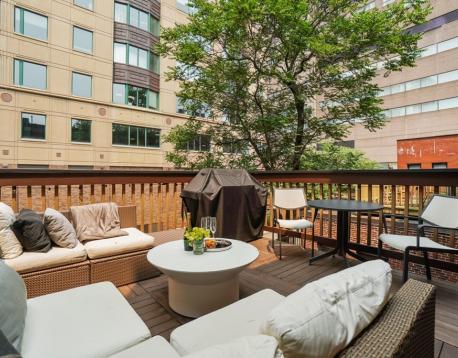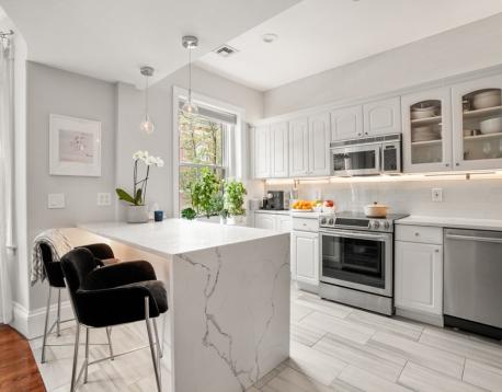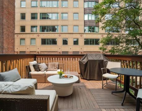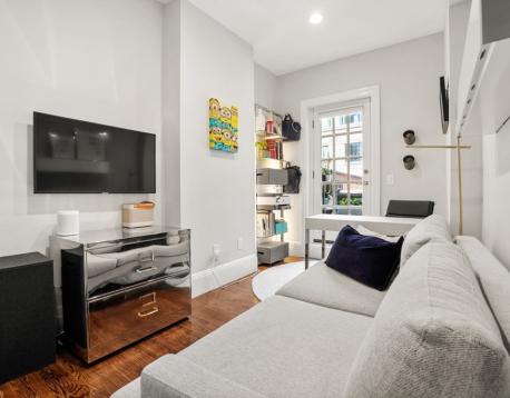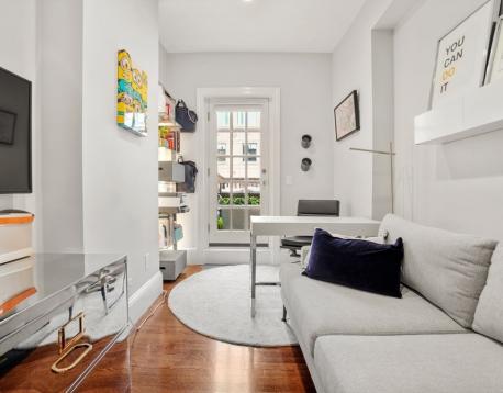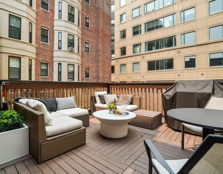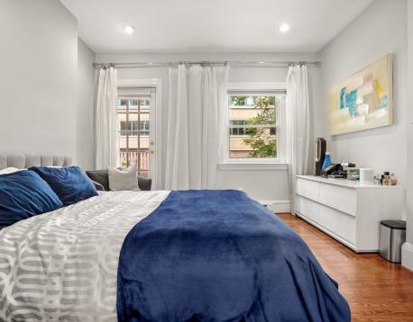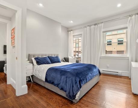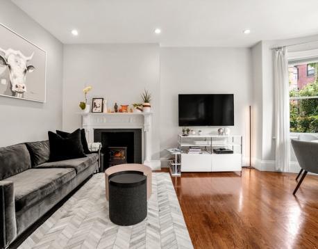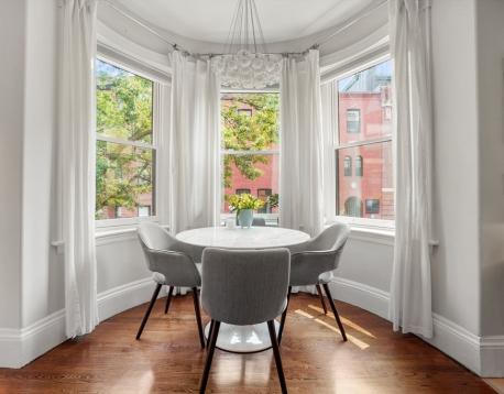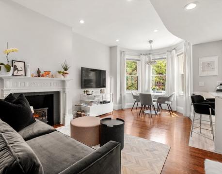 Beautifully updated second-floor unit, perfectly situated in a classic brownstone building near Copley Square. The bright living room, facing south, boasts large bay windows that provide a picturesque view of the flowering trees. The well-equipped kitchen and open floor plan make entertaining a breeze. The spacious primary bedroom comfortably fits a king-size bed and features a large custom closet. The second bedroom offers flexibility as a home office or guest room, with both bedrooms having direct access to the expansive private deck. Experience comfort and convenience with central air conditioning and an in-unit washer/dryer. The home also includes numerous recent updates, such as Pella windows, bathroom, kitchen, recessed lighting, and more. Just minutes from Prudential Center, Star Market, Copley Mall, and a variety of excellent restaurants.