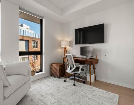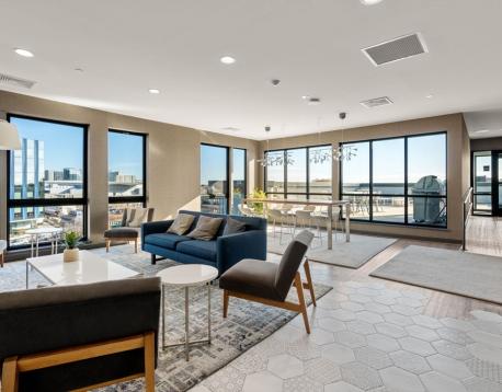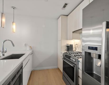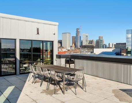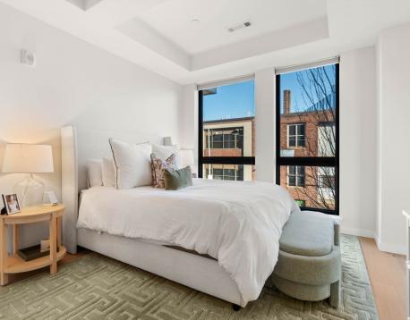 Enjoy luxury living at Port45! This townhouse style two bedroom, two and a half bathroom unit spans two floors with both street-front access and interior access to all the building amenities including garage, gym, club room and roof top overlooking the Boston skyline and harbor. With a private entrance, kitchen island seating, dining area and guest half bath this unit lives large with an overflow of natural light. Large en-suite primary suite with walk-in closet. In-unit laundry. Other luxury building amenities include daily concierge, pet spa, multiple common areas including roof deck with grilling station and dining area, and bike storage. One garage parking space included. Great public transportation options and easy walkability to downtown, Seaport and Southie favorites. Schedule a private tour today! No public open houses will be held.
