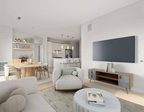 Enjoy modern city living at PORT 45 in South Boston! This bright two-bedroom, two-bath corner apartment offers over 1,000 sq. ft. of space plus a versatile den, perfect for a home office or creative nook. Floor-to-ceiling windows bring in plenty of natural light, and the open layout flows easily from the sleek kitchen to the living and dining area. Step outside onto the private south-facing balcony for fresh air and relaxation. The primary suite includes a walk-in closet and a spacious bathroom with double vanity. Additional features include in-unit laundry and a garage parking space available for rent at $300/month. As a resident, youll have access to a fitness center, club room, rooftop terrace with city and harbor views, and concierge services. PORT 45 is located near the Seaport, Financial District, and some of South Bostons best restaurants, cafs, and nightlife.