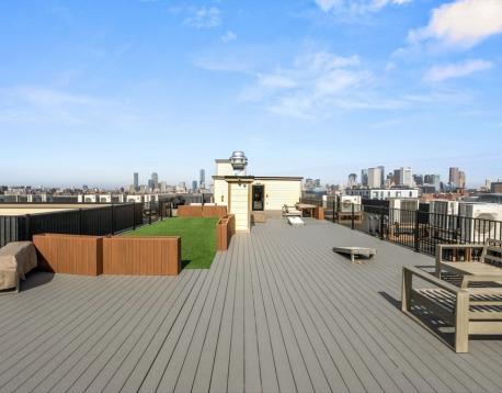 Welcome to this modern 2 bedroom apartment located in the vibrant neighborhood of South Boston. As you step into this space, you'll be struck by the contemporary and minimalist design, with clean lines and an open layout that creates a spacious and inviting atmosphere. The living room features large windows that let in plenty of natural light, illuminating the space and highlighting the light oak floors. The kitchen is fully equipped with modern appliances and sleek, minimalist cabinetry. It features quartz countertops, gas rang cooking, microwave, and dishwasher, making cooking and cleaning a breeze. The apartment also offers a range of amenities that are designed to make your life easier and more comfortable. These include in-unit laundry and air conditioning for those hot summer days. The building also features a fitness center, garage parking, and a rooftop terrace with stunning views of the city.