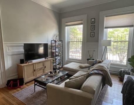 Newly Renovated Gorgeous Condo-Quality 2 Bedroom 1 Bath in a Brownstone! This parlor level apartment is a modern newly refinished apartment complete with 2 bedrooms featuring original details, soaring ceilings, gorgeous hardwood floors throughout, quartz counters, a totally redone kitchen with brand new cabinets, new bathroom with stand up glass shower & a chandelier, private outdoor deck, amazing closet and storage space, in unit washer and dryer, central air conditioning and lots more. Great location between Columbus & Tremont in the South End. One block from the Orange Line and two blocks from the Green Line. Walking distance to the Prudential Center & Copley Mall, Newbury Street, Boston Medical Center, Northeastern, Berklee, Wentworth & of course great food & shopping! Available 9/1/26. Building is all undergraduate students, we would welcome more students! Video can be seen at https://youtube.com/shorts/MC1nlqbR0e8?feature=share. Text to schedule a tour.