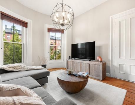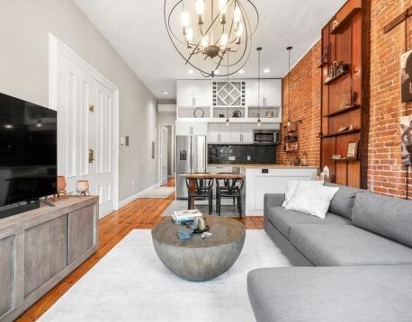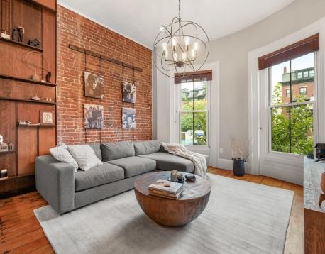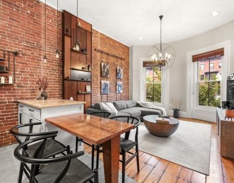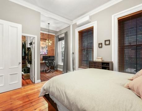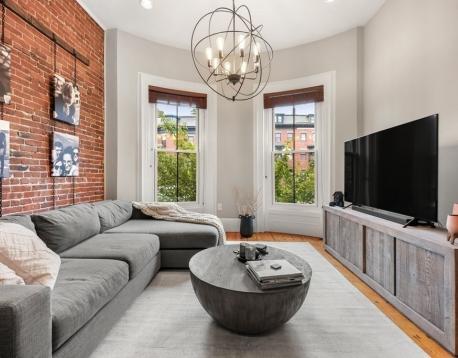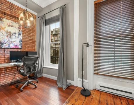 1 bed parlor level, floor through home with 11ft ceilings, two large bow front windows, exposed brick, central AC and beautiful hardwood pine floors. Open kitchen and living room features gas cooking, quartz countertops and peninsula with expandable dining area. The spacious bedroom has built-in queen size bed and side tables, walk-in closet and an extra alcove ideal for an office or workout area. Walk-in closet features floor to ceiling shelving with hanging racks and washer and dryer hook ups. This home is perfect for every day living! Easy stroll to the best restaurants in the South End, Copley Square and public transportation.