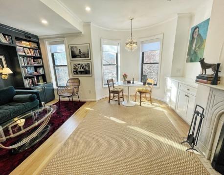 An extraordinary opportunity to call the South End your home! Live in one of the most coveted neighborhoods in the city, surrounded by picturesque brownstones, tree-lined streets and the restaurants that make this area popular. Renovated in 2022, this gem combines character with modern updates including new, in-unit washer/dryer to make laundry day a breeze and two split A/C units to keep you cool in the summer. Custom built-in shelves, pantry, and credenza provide ample storage for your belongings. The spacious living area is perfect after a long day at work, plus it features a large, bow window for plenty of natural light with a bird's eye view of The Boston Ballet. Enjoy some fresh air while reading or sipping a morning brew on your private balcony with city views. This professionally designed unit will be furnished with couch, queen bed, dining table, kitchen pots/pans/utensils, SmartTV and more! Available now!