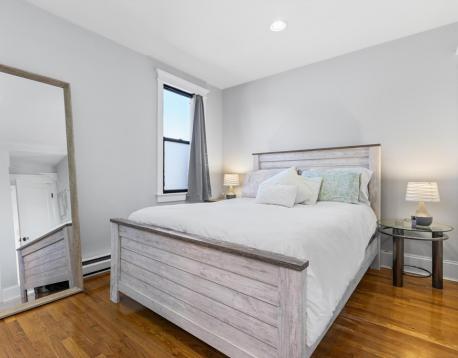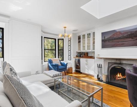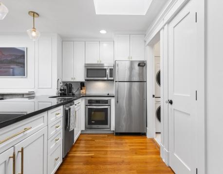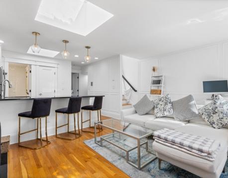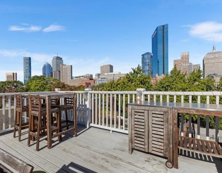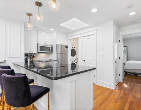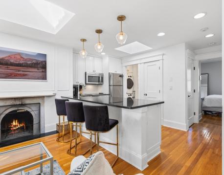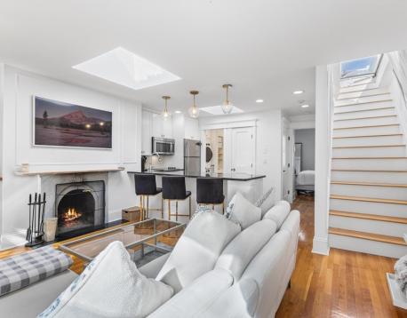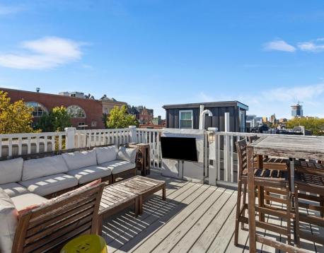 Sunlit penthouse condo for rent with private roof deck in the heart of Bostons coveted South End! This 1 bed/1 bath home offers an open layout with thoughtful design. Hardwood floors, high ceilings, and abundant natural light. The fully renovated kitchen features sleek stone countertops, custom cabinetry, stainless steel appliances, and counter seating. Enjoy the inviting living area with fireplace, custom built-ins, and a wine fridge by the bow front window overlooking tree-lined Warren Avenue. The beautifully tiled bathroom combines modern finishes with timeless design, washer and dryer, and en-suite access from the bedroom. A full staircase leads to a private roof deck with electricity, a television, and stunning skyline views. Just steps from Bostons best dining, cafes, candy & ice cream shop, boutique shops, parks, and public transportation! Available December 1st. All applicants must have a credit score 700+ and First / Last / Security deposit is due upon lease signing.