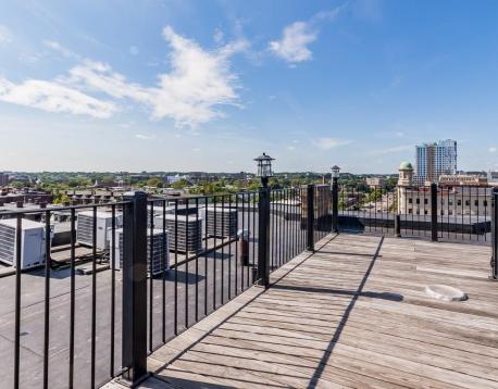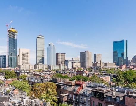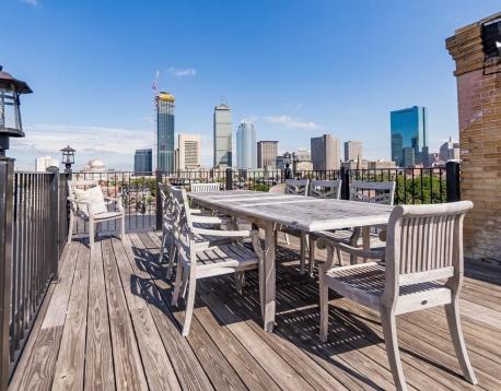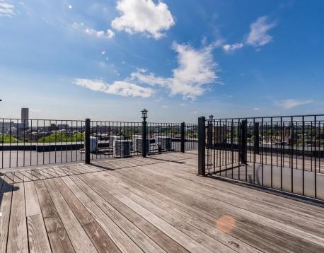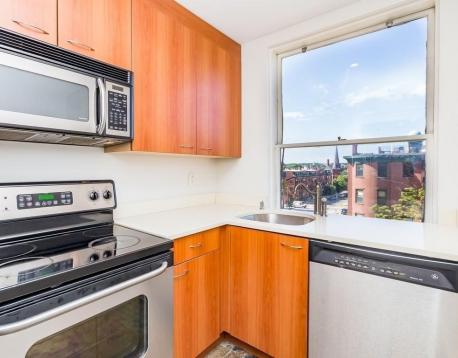 Sun-drenched 2 bedroom is located in the South End. Modern unit with detail and character in a professionally managed elevator building boasting newly renovated common roof deck with panoramic skyline views! Warm and welcoming, the bow front living room features corner-exposure, over-sized bay windows with views of picturesque Chester Park. High ceilings, hardwood floors, air conditioning & fireplace add to the ambiance. The updated kitchen is sunny and bright, with a large window, stainless appliances & granite countertops. Both bedrooms are spacious and sunny, one with over-sized closet. Heat and hot water included in the rent! Laundry in the building!