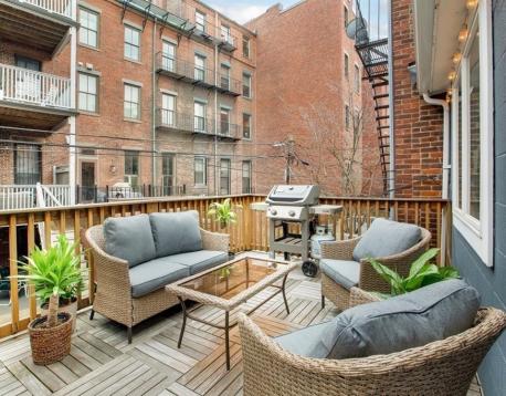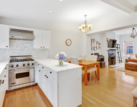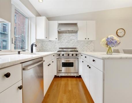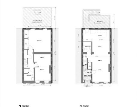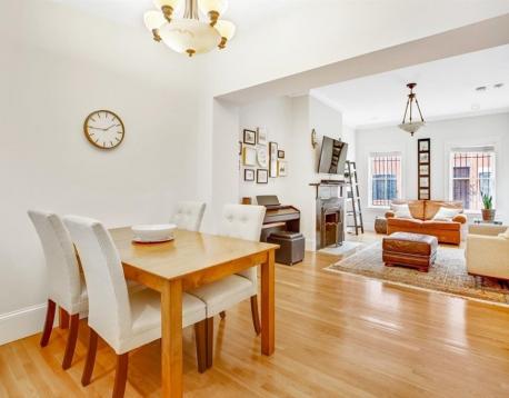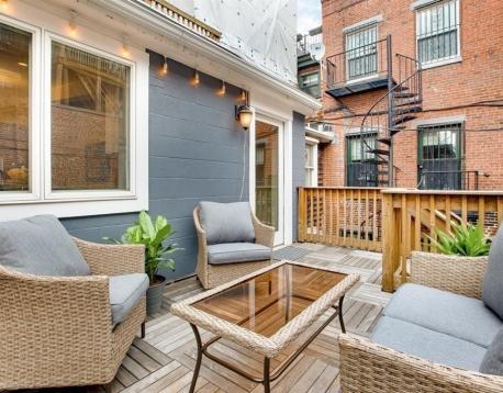 Tucked away on a quiet side street in the heart of the Eight Streets neighborhood, this parlor-level duplex sits within a classic Victorian row house and offers two private outdoor spaces for ideal indoor/outdoor living. The parlor level features an open-concept living and dining area with a renovated kitchen equipped with Sub-Zero refrigerator, Viking stove, stylish countertops and backsplash, and breakfast bar. A private deck off the kitchen is perfect for entertaining and leads to an additional patio, also accessible from the primary bedroom. A full bath completes this level. The lower level offers two generously sized bedrooms, a full bath, and in-unit washer/dryer. Central A/C throughout. Close to the South Ends premier dog park, top restaurants and cafs, with rental parking nearby. Small dogs considered with landlord approval.
