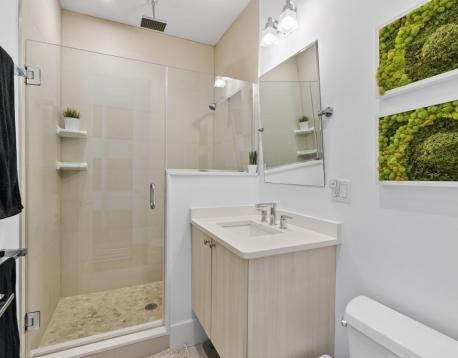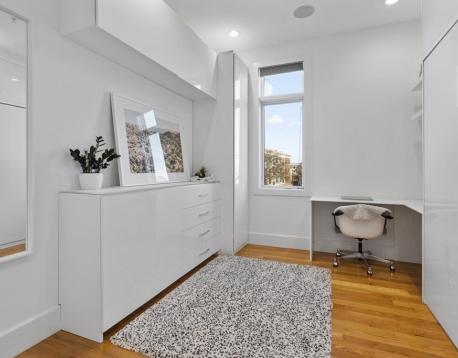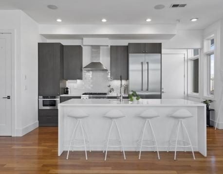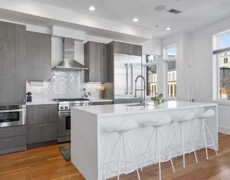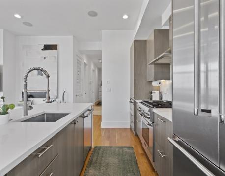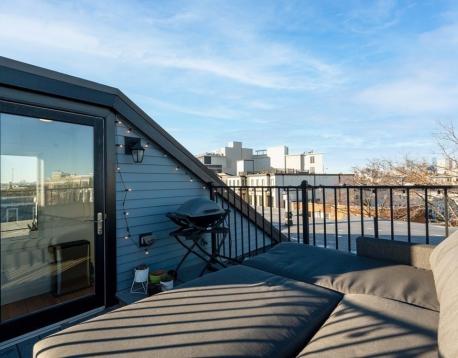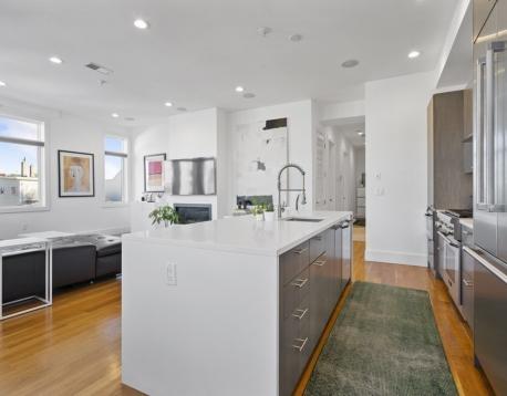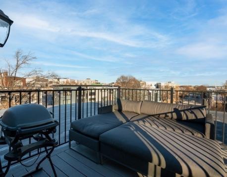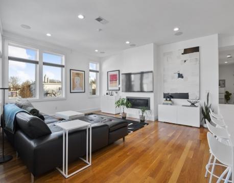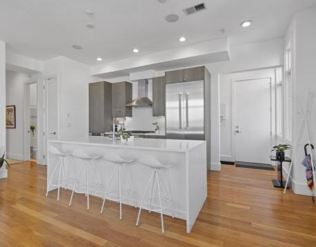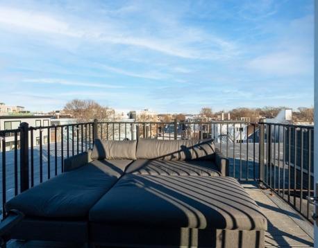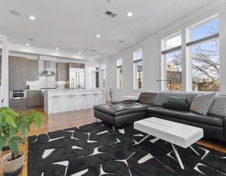 AVAILABLE FEB 1ST | Welcome to this stunning 2-bedroom, 2-bathroom penthouse condo, offering a rare blend of luxury, light, and location. A private internal staircase leads to your very own roof deck ideal for entertaining or unwinding above the city. The open-concept kitchen and living area are flooded with natural light from oversized windows, while a sleek gas fireplace adds instant warmth and ambiance. The chef's kitchen features premium Thermador stainless steel appliances, white quartz countertops, and gas cooking perfect for home cooks and entertainers alike. The spacious primary suite boasts a spa-like en-suite bath and custom closets. The second bedroom includes its own custom closet and a high-end built-in Murphy bed for maximum versatility. Soaring 10-foot ceilings, rich hardwood floors, in-unit laundry, central air, and garage parking complete the package | This unit has one garage parking space and a private roof deck.
